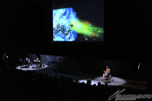 隨著朗讀的內容變化,現場配合播放歷代宇宙世紀系列的動畫本篇影片,並搭配木吉他和電子琴的現場演奏BGM,讓池田原本就強勁的朗讀演出,更為生動。