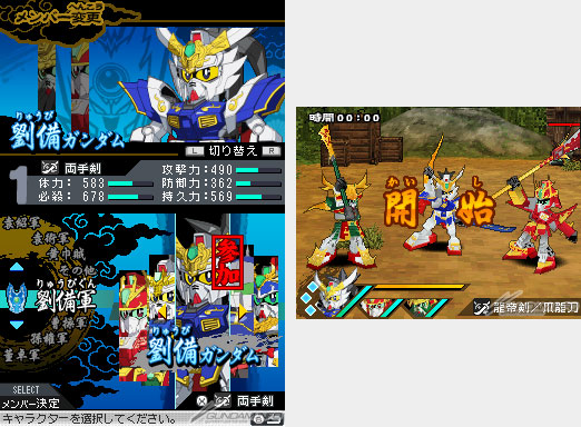 由NAMCO BANDAI Games於12月2日(四)預定推出的任天堂DS用遊戲軟體「SD高達三國傳 BraveBattleWarriors 真三璃紗大戰」是動畫、模型、漫畫中都大受歡迎的「SD高達三國傳」第一個電玩作品。收錄「劉備踏上旅途」到「赤壁之戰」為止的劇情,並且可以操作在動畫本編中登場的40名以上武將角色。是一款能夠體驗爽快斬擊連續技的「合戰演武動作式」遊戲。