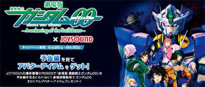 終於將在9月18日(六)上映的「劇場版 機動戰士高達00 -A wakening of the Trailblazer-」現正舉辦,只要在卡拉OK JOYSOUND的最新機種CROSSO收看劇場版的預告篇,就可以得到「劇場版 高達00」原創虛擬道具活動!