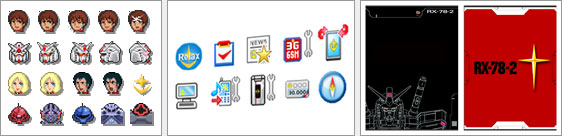 「945SH G Ver.GP30th」擁有許多専用原創內容,例如MY繪圖文字和目錄畫面的圖樣、docomomail面板、照相功能的指導說明等等,連極細微的部分都是高達樣式。