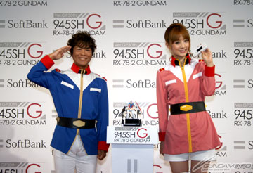 紀念發售典禮在今天於秋葉原舉辦,現場有和阿姆羅・雷這個角色非常熟稔的聲優古谷 徹和藝人小倉優子小姐登場。邊用自己的雙手感覺手機和原創高達模型,一邊熱烈地訴說其魅力。