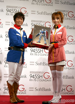 典禮中是交由本次經手開發的Soft Bank Mobile(株) 產品服務本部 商品企劃部的浦元芳浩先生來進行高達模型手機的介紹。