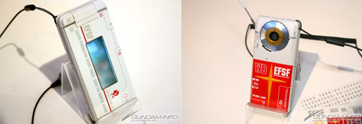 高達模型手機專用模型,是高達模型系列中首次採用的金屬框架。手上拿著模型的古谷表示「這傢伙、很重喔!」,小倉小姐也說道「看起來很普通,實際上卻非常沉重呢」。