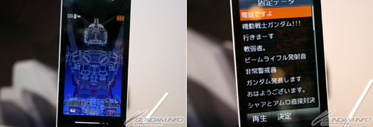 除了電池的殘量和電波狀況的表示有所不同以外,也收錄了許多阿姆羅的名台詞等音效。