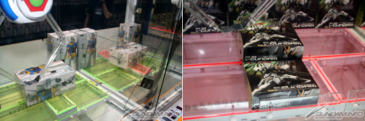 高達作品全部放在展示櫃內的夾物機台怪手,可以把「超大尺寸軟膠公仔~RX-78-2 高達~」、「DX BREAK IMPACT ~逆襲的馬沙~」等夾出來喔!