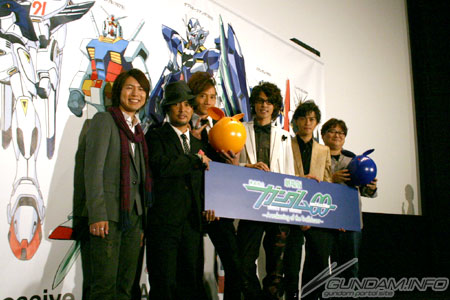 初日的這一天,在都内的劇院舉辦了舞台見面會,並且有水島精二導演與擔任高達尖兵聲優的宮野真守、三木眞一郎、吉野裕行、神谷浩史,還有擔任劇場版新角色「笛卡兒.雪曼」聲音的演員勝地涼登台。