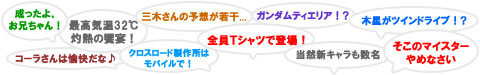 本週的手機廣播是? 手機版將會播出與WEB版不同版本的CHARA HOBBY公開錄音的聲音! 手機版的附照片報導也只有這裡才看得到,一定要看喔! 還加送尖兵配音員&入野先生簽名T恤! |