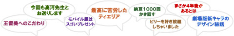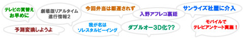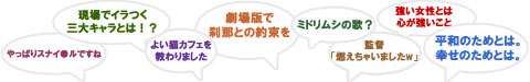 本週的手機廣播是? 本週的手機廣播是劇場版公開前特集! 製作剛結束的水島導演登場!我們即將傳達他熾熱的思潮與感動。 在劇場版公開之際,導演想向各位聽眾調查的內容究竟是!? 請期待節目尾聲水島導演與入野先生的特別禮物! 在手機網站上接受申請,請務必確認看看喔♪ |