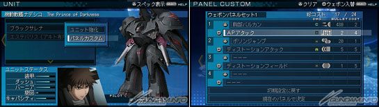 BANDAI NAMCO GAMES預定於2011年1月13日發售的PSP®專用軟體「Another Century's Episode Portable」之中,除了舊作中大家所熟悉、可使用ACE POINT強化機體參數的「機體改裝」之外,還新採用可以改裝武器面板的「面板改裝」。