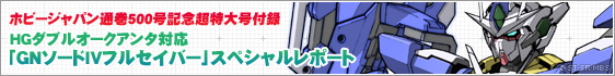 「月刊Hobby Japan」在2010年12月25日發售了2011年2月號,也正式迎向發售第500號。而成為「發售500號紀念超特大號」附錄的特製高達模型就是「HG量子型00對應 GN劍IV全達加」。自公開以來,持續收到高達&高達模型迷們熱烈支持的「GN劍IV全達加」,再過一個月就可以抵達各位的手邊了!!