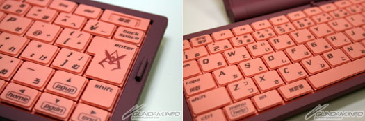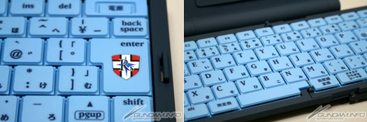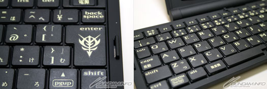 ▲展開後的鍵盤間隔約17mm。充分的大小可減少輸入錯誤。一般為JIS的配製,如果習慣使用電腦的話能立即上手。