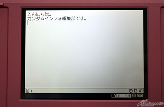 解析度為640×480,全形輸入26文字×17行,最大能表示到442文字。日語輸入搭載「ATOK」。在輸入選項中也可選擇Windows標準的「MS-IME」輸入法。