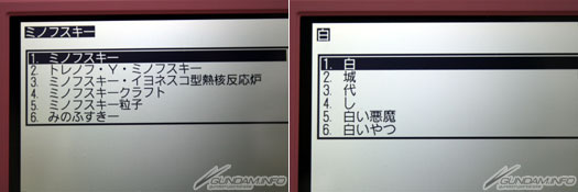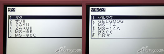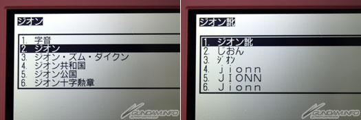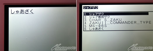 ▲內建字典約800語的高達用語,像照片上一樣輸入「馬沙渣古」的話,會出現MS名、型式號碼等等。