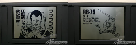 ▲結束時會有各式各樣的名台詞與MS、戰艦等等的機械解說。另外,收錄的名台詞中,伴隨著各模型將有不同的台詞搭配。