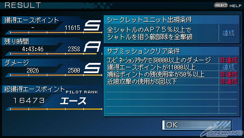 達成各種不同的隱藏條件之後就會出現「隱藏機體」,將出現的機體擊破的話在結算畫面會有追加的王牌點數。玩家可以積極的達成條件以獲取點數。