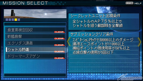 ▲以後在任務選擇畫面就可以確認出現條件。另外,已經擊破隱藏機體的任務,只要達成條件再度登場,還是能再撃破。