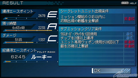 本作除了在任務中通過設定好的任務條件之外,還存在著「隱藏機體出現條件」與「支線任務過關條件」。