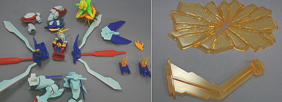 | 總而言之零件數量就是多!可說是到目前為止的組裝式模型中,壓倒性的零件量。零件多的話,在組裝時也更加有趣呢。也附屬了裝飾模型用的台座。 | |