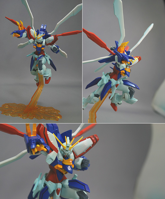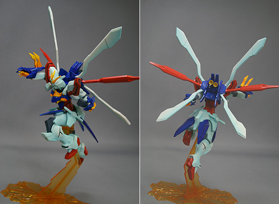 | 完成後約13cm的多門愛機・神威高達。看似立刻要出動的魄力不知是否透過照片傳達給大家了呢? | |