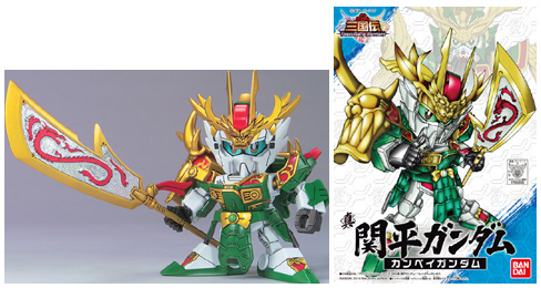 成為關羽弟子的年輕鬼之武將「關平高達」在電視動畫版中登場。內含大張立體貼紙可以彩飾其武器・麒麟牙。