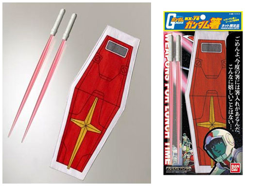 以高達的代表性裝備「光束軍刀」為主題所製作的筷子「RX-78高達筷」,本次特別推出與「光束盾造型筷子套」的組合,於萬代官方購物網站「Premium萬代」上數量限定販售。於本日開始接受預約,商品預計於2011年3月寄送。價格為2,100日圓(含稅)。