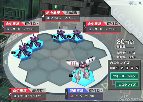 目前為止的部隊編成只能在系統預設的部隊陣形當中進行選擇和簡單的設定,但從第5季開始可以對單一機體進行「初期配置」和「攻防指示」、「攻撃距離」、「AI設定」等項目進行任意的設定。此外,只要對機體點擊後牽引移動,就可以對機體位置和陣型進行自由配置。