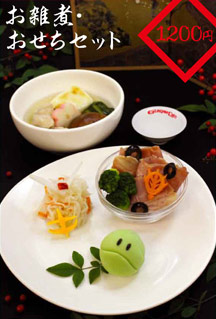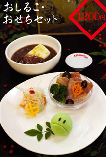 特別菜單為充滿過年氣氛的「雜煮、年菜套餐」和「紅豆湯、年菜套餐」2種。此外前500名點選特別菜單的顧客,將可獲得附GUNDAM Café標誌的杯子!