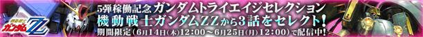 數位卡片遊戲「高達TRYAGE」官方網站,為了紀念最新一彈的第5彈開始營運,將以『機動戰士高達ΖΖ』中選出的3話作期間限定的免費配信。