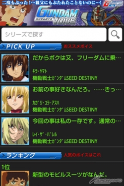 由NAMCO BANDAI GAMES營運的行動網站「鋼彈GATE」人氣語音專區「GUNDAM VOICE」將支援Android智慧型手機,於「au Smart Pass」好評配信中。