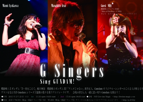 演唱眾多高達系列主題曲的動畫歌曲演唱會「G Singers ~高歌Gundam!~」,決定於2月23日(六)在東京・四谷的Live inn MAGIC舉辦。