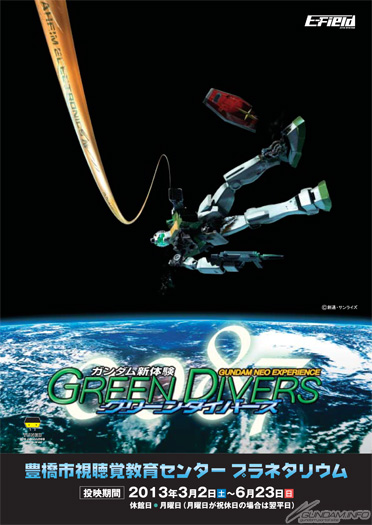 星空投影機360度全天周螢幕用影像「高達新體驗-0087 GREEN DIVERS」在愛知縣・豐橋市視聽覺教育中心星空投影廳,即日起至6月23日(日)止期間內六・日・假日限定好評上映中。觀看費用為大人300日圓(含稅)、兒童100日圓(含稅)。放映時間為11:00、15:30共2次。