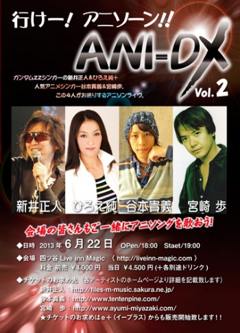 以高達歌曲為中心的動畫歌曲演唱會「去吧!動漫領域 ANI-DX Vol.2」,6月22日(六)在東京・四谷 Live inn Magic 舉行。