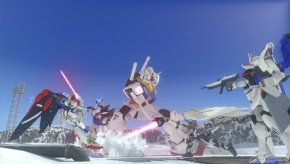 像是零件脫落這種只有以高達模型為題材的本作才能辦到的破壞演出,或者是以桌面或模型場景為戰場,用1/144比例的高達來挑戰1/60大小的高達等等,以往未曾有過的體驗,將可透過網路連線跟夥伴們一起同樂。