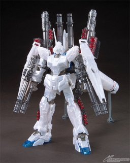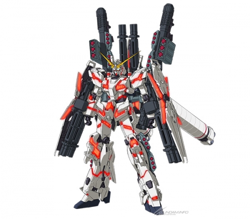 全裝甲獨角獸高達發動NT-D的狀態。全身裝備的大量武器即便在毀滅模式下也不會妨礙到動作,能夠完全發揮武器的攻擊性能。