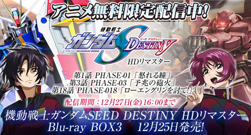 還有,BANDAI VISUAL 將於12月25日(三)發售「機動戰士高達SEED DESTINY HD REMASTER」最新Blu-ray BOX3。也不要錯過囉。