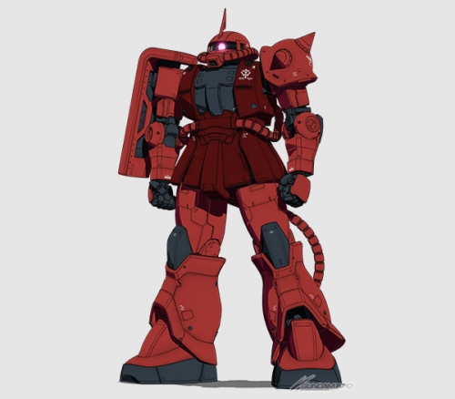 以自護公國軍MS駕駛員身分,參加了一年戰爭最初期的魯姆會戰。之後被稱為紅色彗星大為活躍,成為聯邦軍畏懼的對象。帶著遮掩面目的面罩。 |