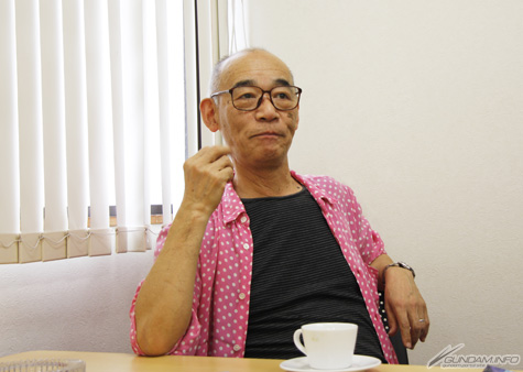 富野: 在細節上我不想承襲過去高達系統的設計,但是如果不是像安田君這樣的天才,是無法創作出下個世代的東西來的,所以這次請他來作設計的工作。其他還有許多的MS是請形部先生(負責機械設定的形部一平)來作設計的。我知道他有在做鞋子設計的工作,直覺像他這樣的人如果喜歡機械的話一定可以擔當這個大任,而且也漂亮地達成了任務。鞋子是拿來穿的東西,明明是個只有單一功能的東西,他卻可以作出那麼多樣的設計。所以我覺得如果是形部先生的話,一定可以在設計上展現出綜藝節目般的效果。而將他的設計排起來看,還真的就像是一堆玩具般什麼東西都有。有各式各樣的高達、有形形色色的敵方MS,全部都收在寫實機器人的範圍內,打造出一個「設計」上的綜藝秀。還有就是現在日本很流行吉祥物這種東西,我想說跟這方面作個結合。形部先生的設計真的很奇特,只要改變角度就很難判讀形狀,甚至到了要作指示都很困難的地步(笑)。到『機動戰士高達UC』為止的作品,基本上都給人是機械的感覺;但是形部先生的設計外型看不出是機械,卻被統合在MS的設計當中,真的很神奇。