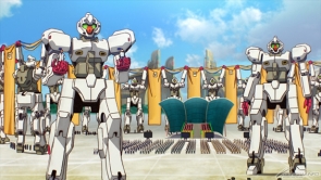 為了對抗襲擊,大型動物群派出克寧駕駛的蒙特羅和格利摩亞部隊迎擊。而貝利因為諾蕾德和拉萊雅被當作人質要挾,所以駕駛G-SELF出擊。