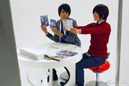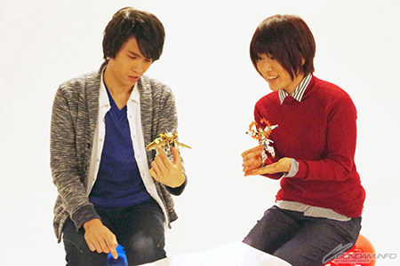 我也是第一次拍廣告所以很緊張。但像這樣能有機會參加兩部作品的合作企劃,讓我感到非常高興。兩個人一起觀賞世界觀大異其趣的作品不但很新鮮,也是很有趣的演出。高達35周年RISE!配色版高達模型組則真的是很帥氣!