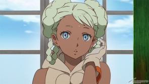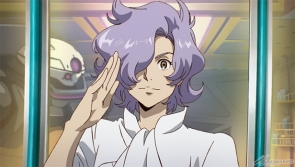在聖波特上,來自月球的德瑞特將軍和地球這邊的古辛一行人進行了會談。但會談一結束,假面男和克寧便以聖波特為盾強行發動MS戰。貝利對這種無視聖域的戰鬥感到憤怒…。