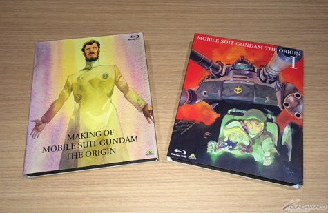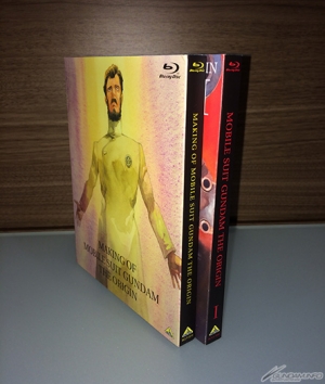 Loppi 限定版預售票內附的Blu-ray「MAKING OF 機動戰士高達 THE ORIGIN 安彦良和睽違25年的挑戰」,外盒是是自護.茲姆.戴昆的插圖;而在2月28日(六)起在電影院限量販售的最速搶先販售版,以及4月24日(五)起開始一般發售的Blu-ray第1集外盒則畫有卡斯巴爾、阿爾黛西雅以及太空坦克初期型,全都是用安彦良和全新繪製的插圖。