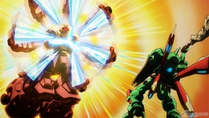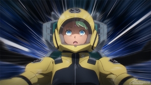 永賀的外牆破裂,大型動物群開始幫忙聚集太空碎片。阿依達則說出要藏身在隕石氣球裡逃出永賀。另一方面,假面部隊為了測試MS比夫隆而出擊。