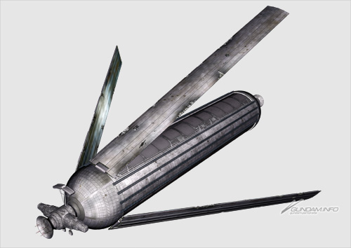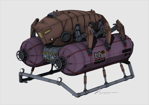 自護公國軍所展開的獨立戰爭中最初的大規模作戰,就是朝著地球聯邦軍總司令部所在的賈布羅投下宇宙殖民衛星的「不列顛作戰」。為了執行此作戰,必須獲得一座幾近完好的殖民衛星。自護公國軍把目標定在親地球聯邦派的SIDE 2哈帝的首都番地──伊菲修島,為了利用致命性的化學武器「GG毒氣」置全居民於死地而展開行動。此時所使用的就是能搬運和注入GG毒氣的特殊宇宙艇。本宇宙艇由進行操縱及控管毒氣注入作業的上部,以及下部的儲藏槽所構成。上部有著讓人聯想到昆蟲的特殊形狀,能夠和儲藏槽部分分離移動。就根本來說,本宇宙艇並不是開發來專門注入GG毒氣的機體,而是用來搬運氧氣等,於建設殖民衛星時所需的氣、液體,用來注入於施工現場的機體,本次則將其轉作軍事用途。因此,搭乘人員為了避免預料外的毒氣洩漏意外,所以都穿著了特殊的太空衣。