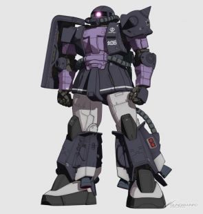 自護公國軍的主力──MS-06 渣古II,以初期生産型的C型,還有之後登場的F型為首,為了因應在各種戰況都能夠運用的「汎用性」要求下進行開發。為了迎接獨立戰爭,開始整備泛用性高的C型量產體制後,自護公國軍就著手開發往特定戰鬥狀況特化、對應局地戰的MS-06 渣古II。其中,最早完成的就是MS-06R-1A 高機動型渣古II。本機體排除了泛用性,為了特化宇宙空間的戰鬥機能,施加了追求更高機動性的改良。背部大型化的背囊(背包),也增設了能裝填更多大量推進燃料的外接燃料槽。腳部各設置了3具合計共6具加速用的大型推進器,意圖增強機動力。本機體在獨立戰爭初期的大規模艦隊戰及魯姆會戰中,由過去以測試駕駛員身分參與MS開發的蓋亞、奧爾迪加、馬修等黑色三連星一行人所駕駛。他們擅長組成對艦戰鬥用的隊型來使出三位一體的攻擊,因應功能定位所採用的不同武裝也成了他們的特徵。領導隊伍的蓋亞在兩肩裝上盾牌,以增加火箭炮的攜帶彈數。善於射擊的馬修,其座機則裝備了能夠行進中、遠距離射撃的MS用對艦步槍 ASR-78。然後,擅長近接格鬥戰的奧爾迪加,其機體則作為蓋亞機和馬修機攻擊的收尾,以巨型電熱斧直接攻擊來給予最後一擊,藉由此合作方式,他們在魯姆會戰中獲得了極高的戰果。