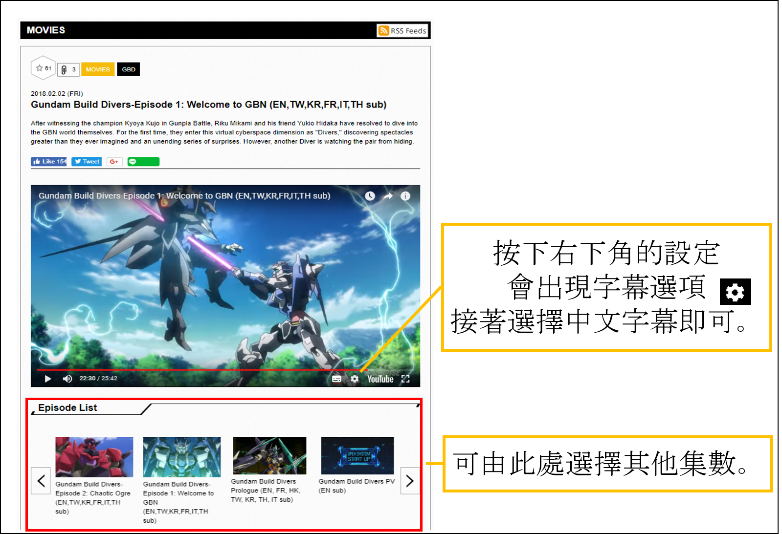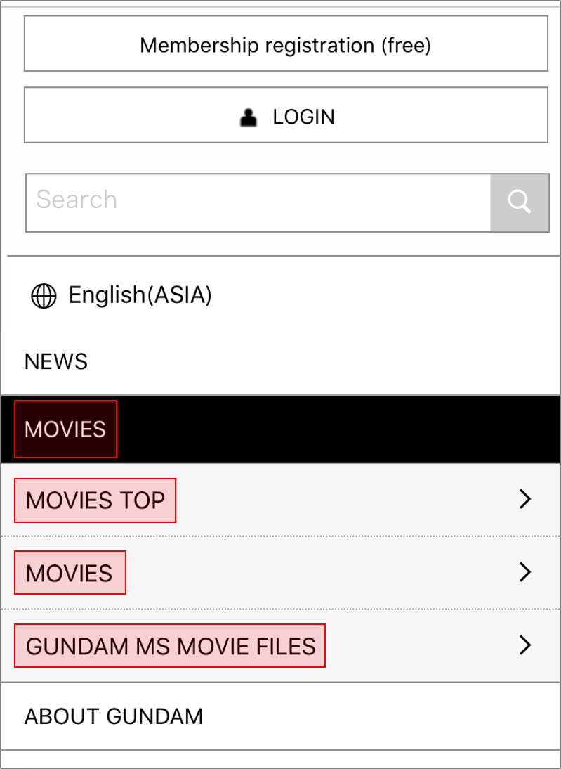 在首頁的頂端按下【影片】後,會出現【影片】與【高達MS動畫圖鑑】